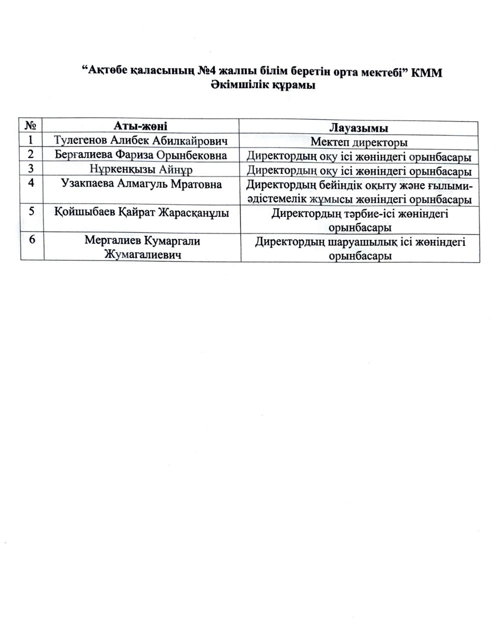 “Ақтөбе қаласының №4 жалпы білім беретін орта мектебі” КММ